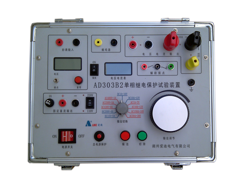 AD303B2單相繼電保護試驗裝置是一種性能優良的試驗設備:它采用鋁合金機箱,PC面板,外形美觀,裝置內配備全套數字式儀表;能輸出一路全隔離、可調交直流電壓、交直流電流和一路固定直流電壓。具有輸出容量大、功能強、體積小、重量輕等優點。適用于各種繼電器的校驗和特性試驗,也可作成套35kV及以下繼電保護裝置的校驗,還可以做單相200A以下的一次通流試驗。